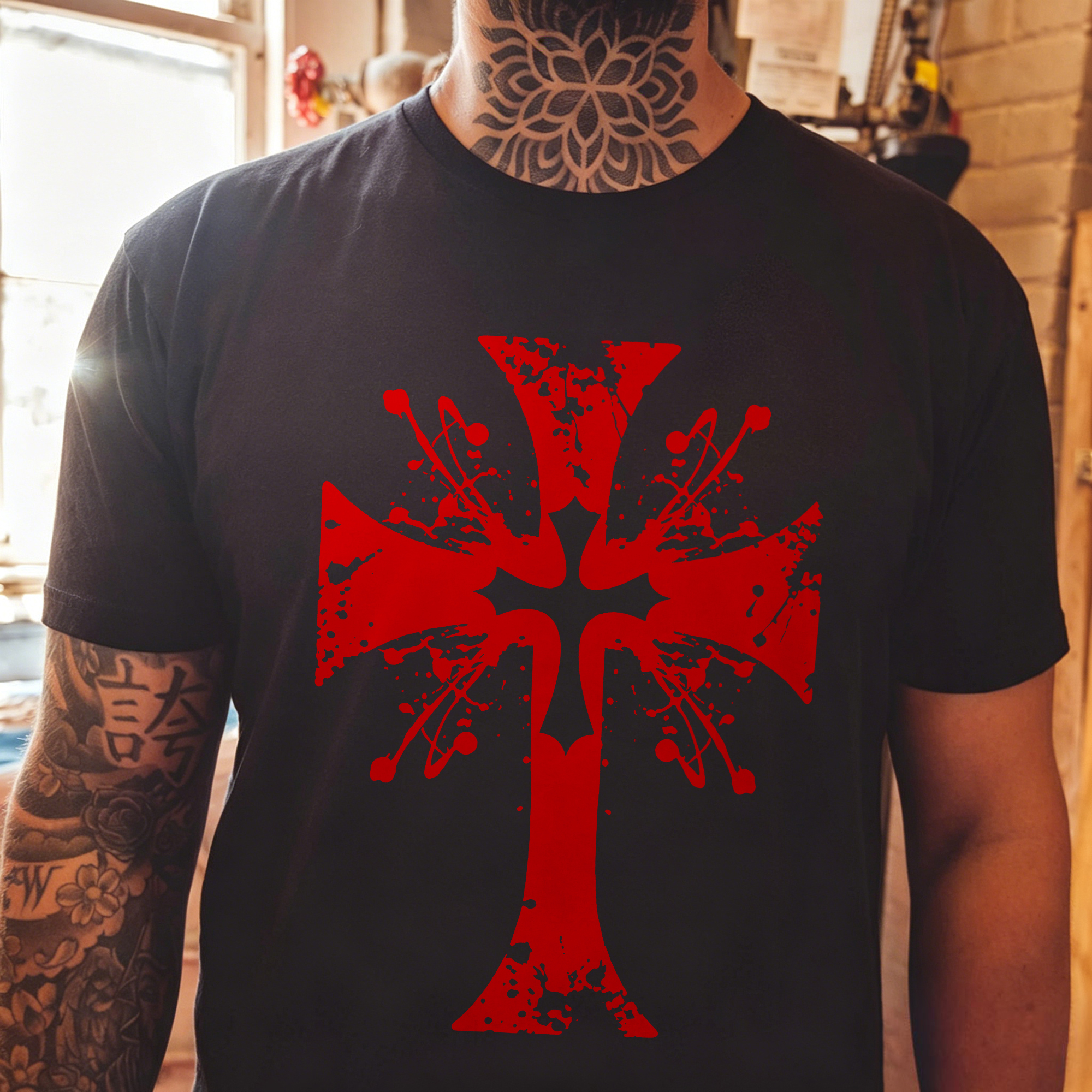 Blood Splatter Orthodox Cross Design Printed Men's T-shirt