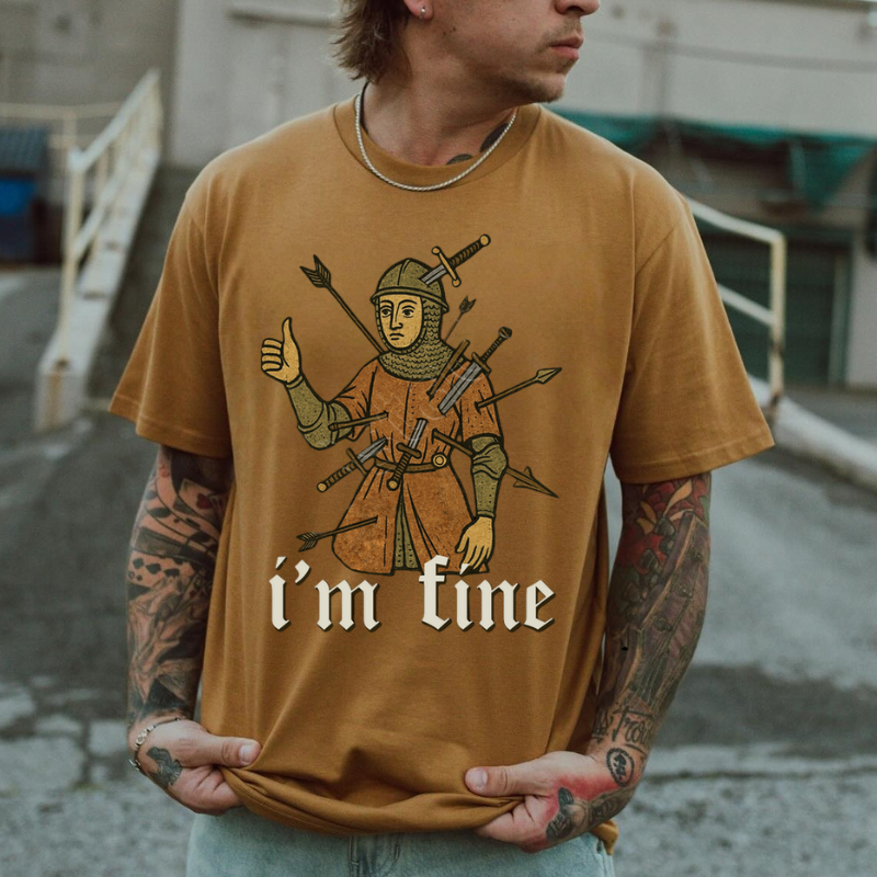 I'm Fine Sarcastic Medieval Printed T-shirt