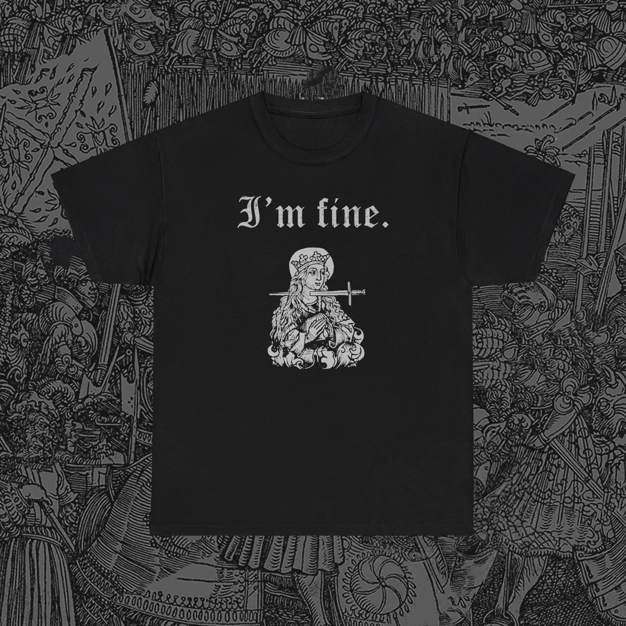 I'm Fine Shirt Sarcastic Medieval Woodcut Printed T-shirt