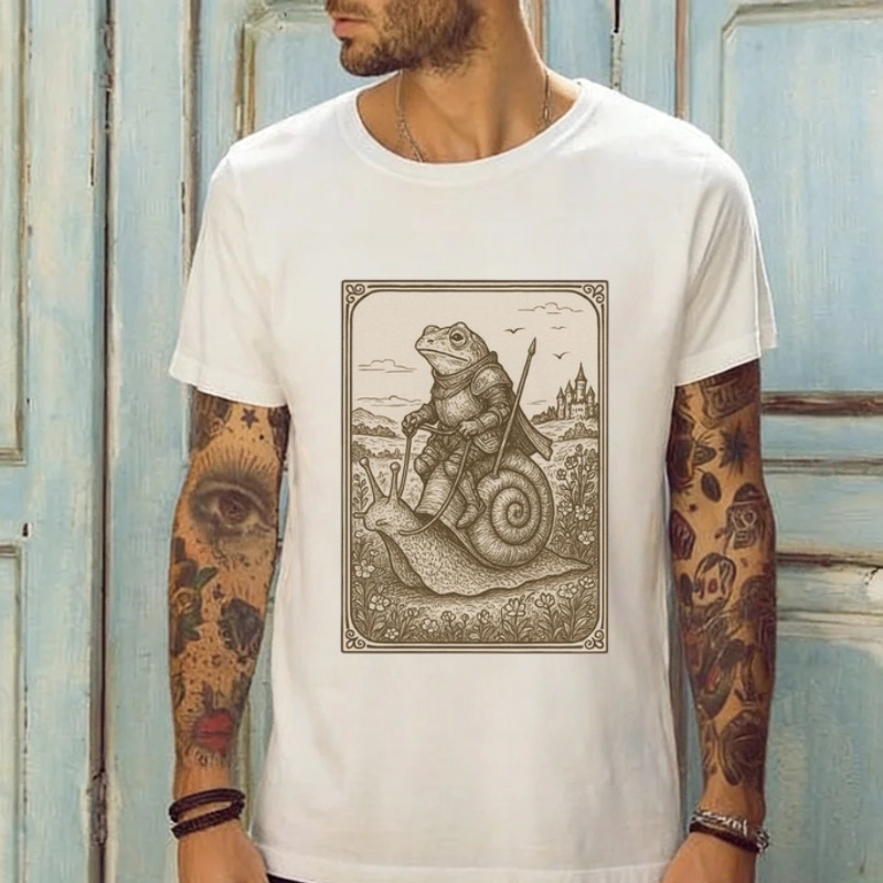 Medieval Frog Knight Riding a Snail Printed Men's T-shirt