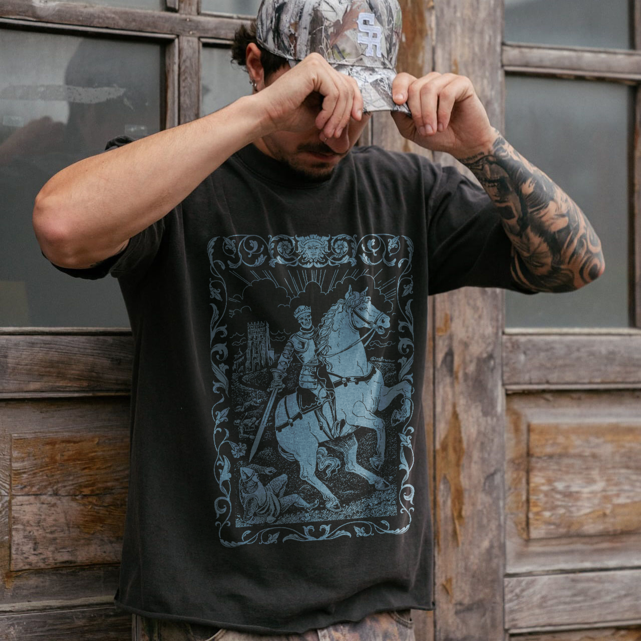 Medieval Knight On Horseback Printed Men's T-shirt