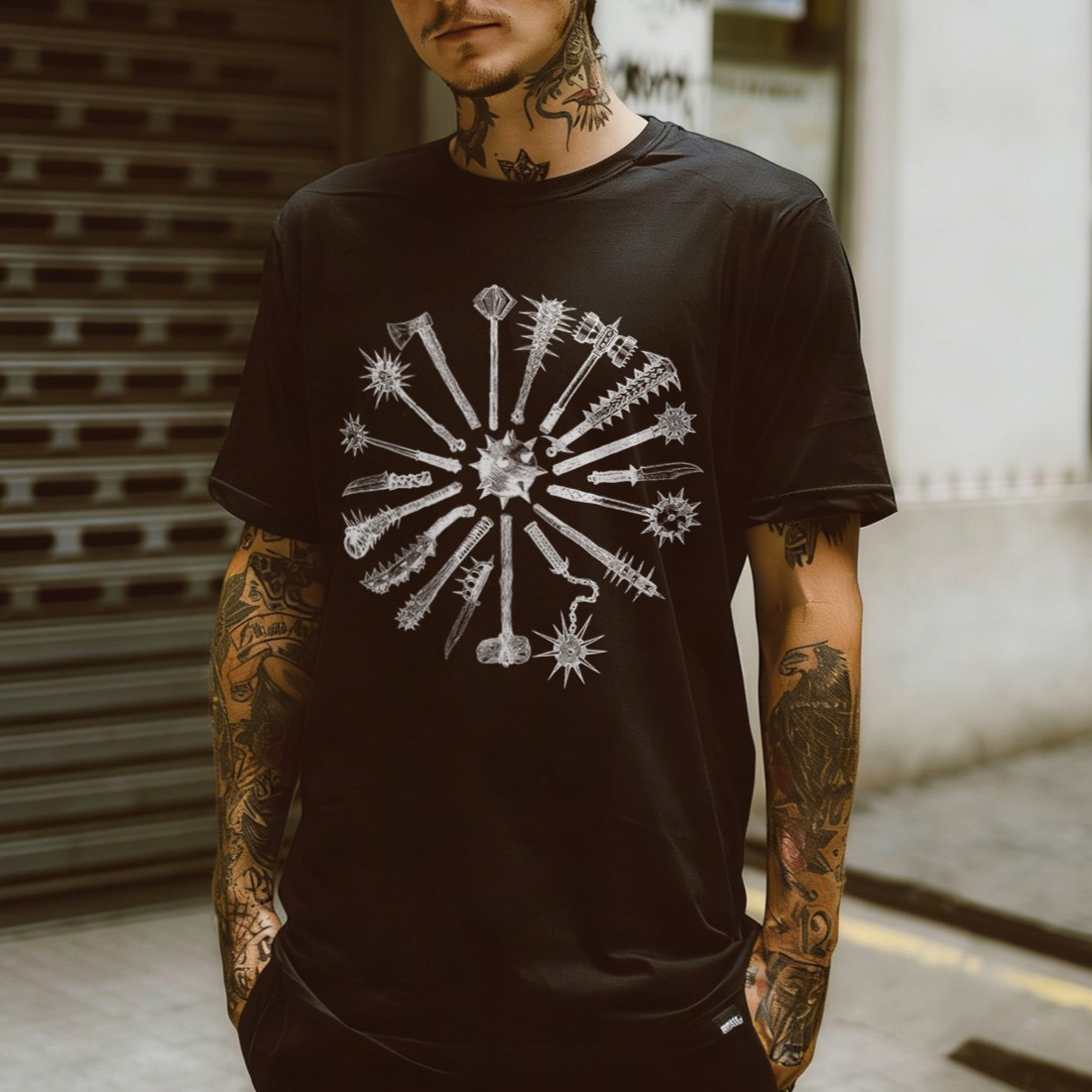 Medieval Weapons Radial Sunburst Printed Men's T-shirt