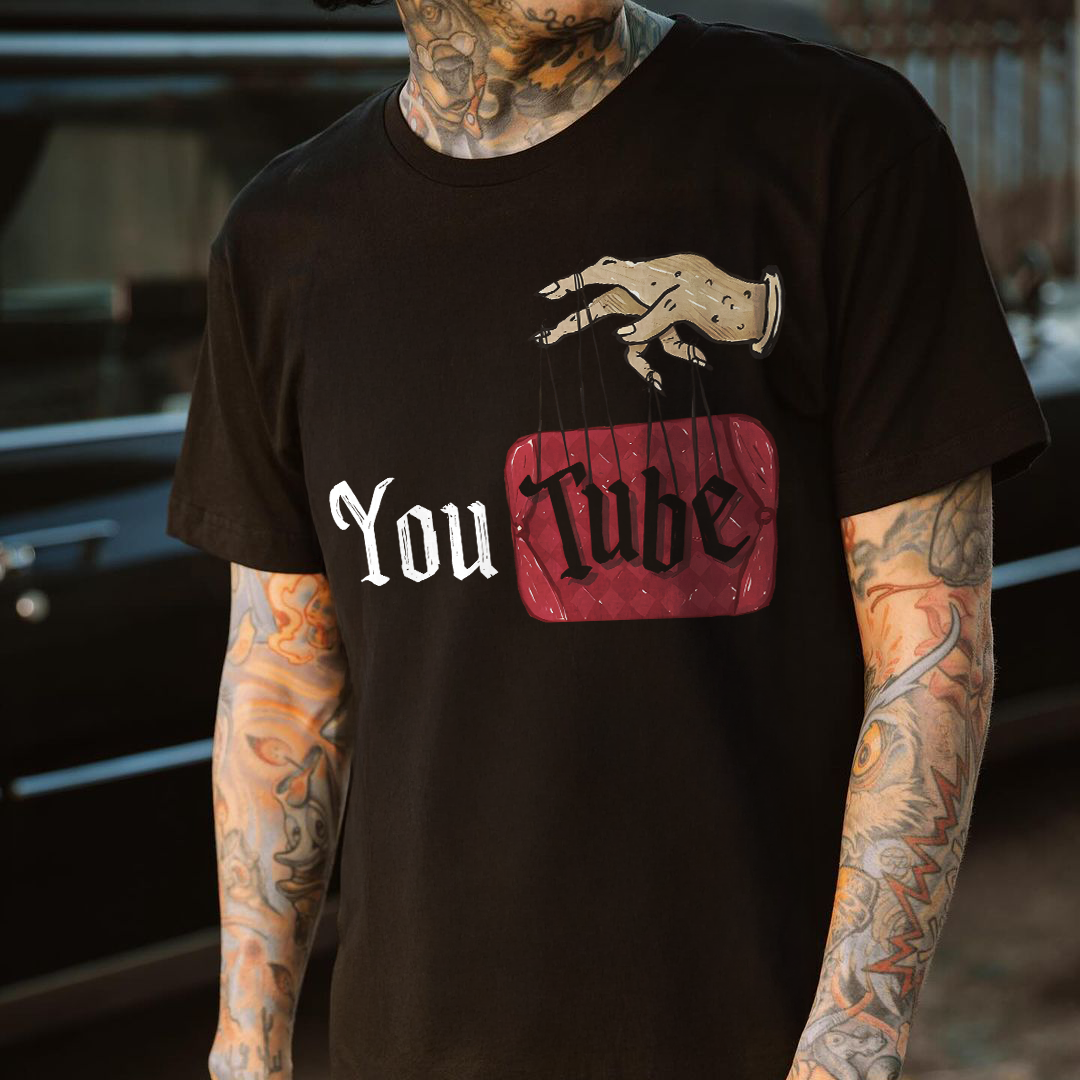 Puppet Master Controlling YouTube Logo Printed Men's T-shirt