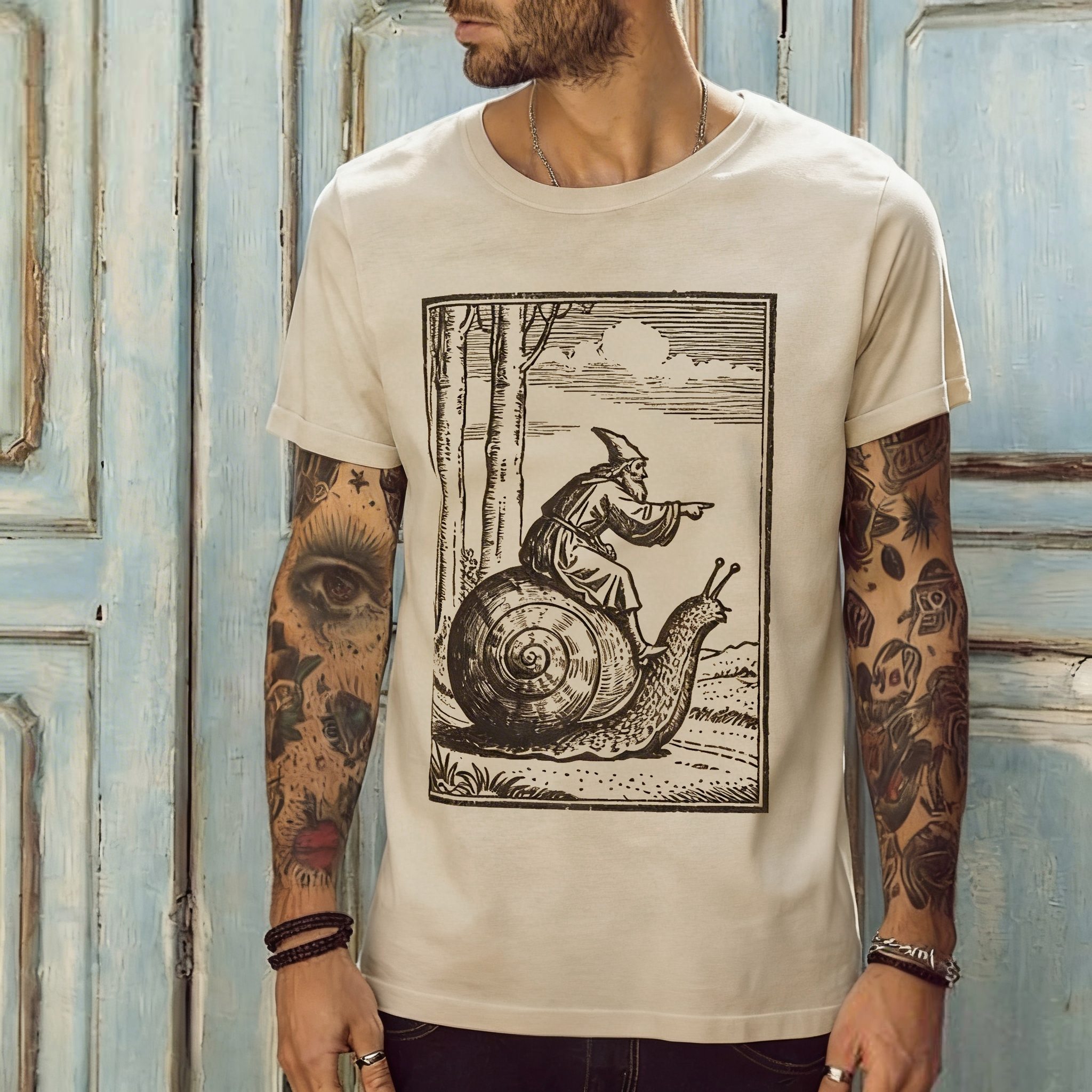 Retro Knight On Snail Printed T-shirt