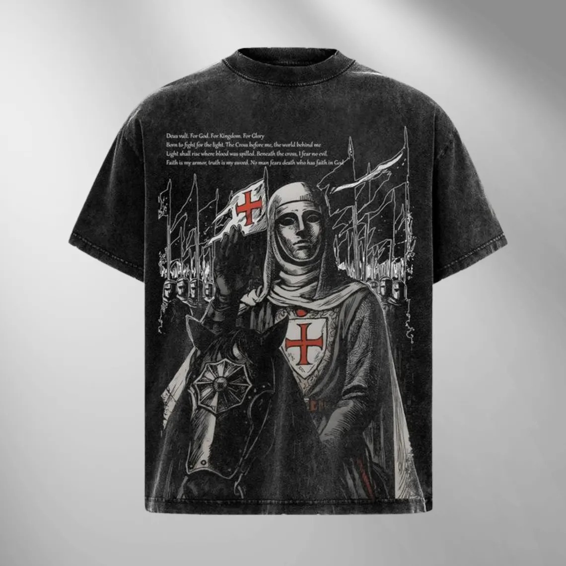 The Crusader King and His Holy Army Vintage Printed Washed T-shirt