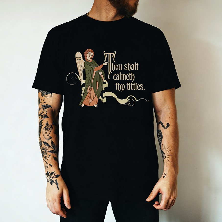 Thou Shalt Calmeth Thy Titties Medieval Angel Printed Men's T-shirt
