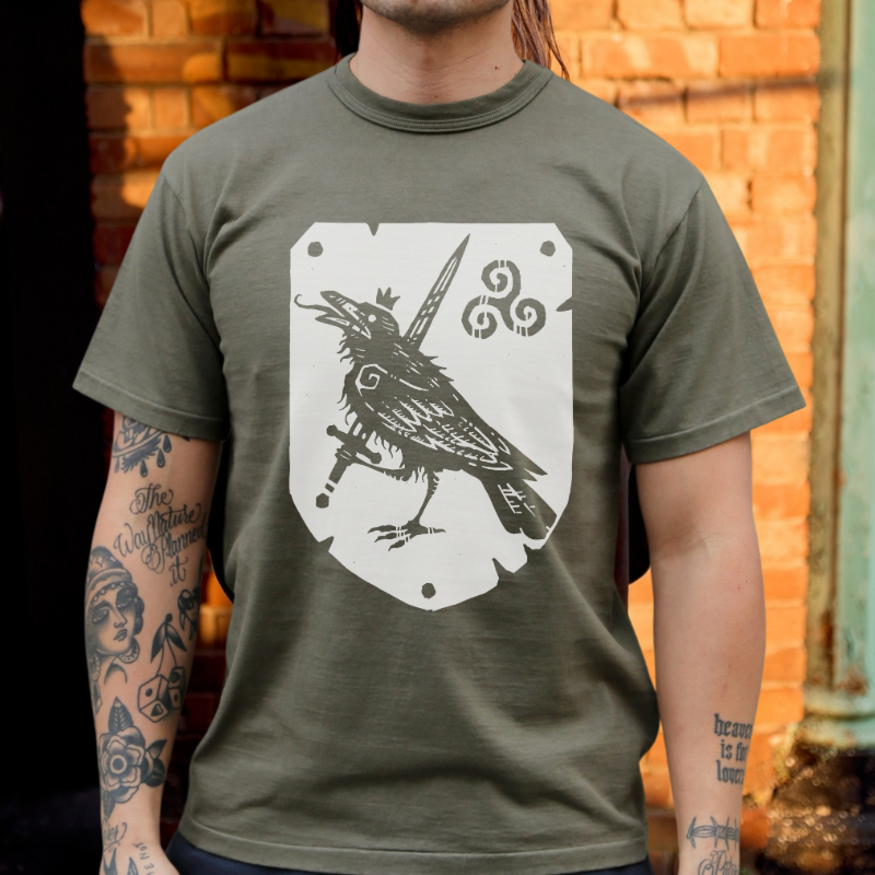 Valravn With Sword Shield Printed Men's T-shirt